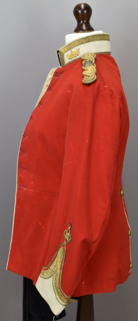 British Army Gloucestershire Regiment officer's full dress scarlet tunic with rank insignia and gilt collar badges, together with a pair of trousersConsigned by the Soldiers of Gloucestershire Museum Trust