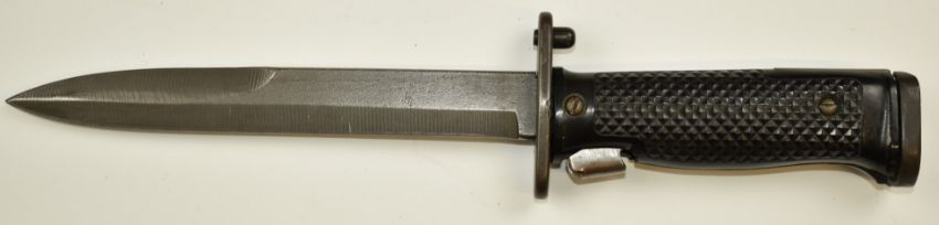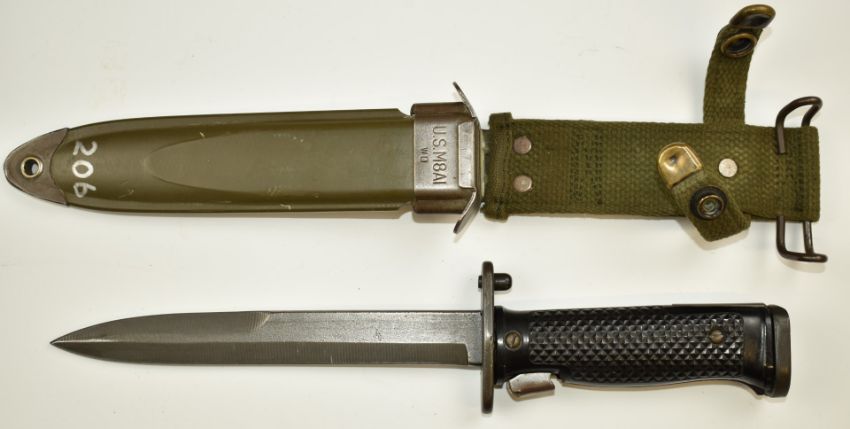American M5 bayonet with 17cm blade, cross guard stamped PAR M5A1, M8 scabbard and belt attachment. PLEASE NOTE ALL BLADED ITEMS ARE SUBJECT TO OVER 18 CHECK ON COLLECTION OR DELIVERY