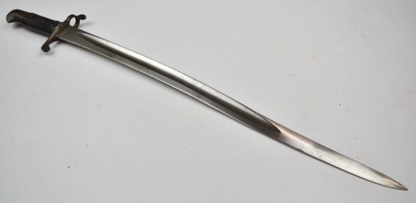 British 1856/58 pattern sword bayonet with 58cm yataghan fullered blade and scabbard. PLEASE NOTE ALL BLADED ITEMS ARE SUBJECT TO OVER 18 CHECK ON COLLECTION OR DELIVERY