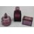 Three pieces of amethyst glass comprising a Heinrich Hoffman lidded box and scent bottle both with intaglio decoration and a similar lidded pot, largest 14cm tall.
