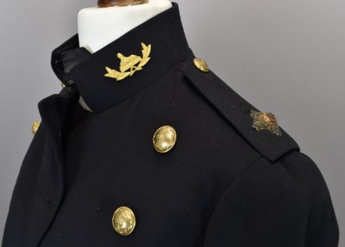 British Army Gloucestershire Regiment officer's frock coat with gilt collar badges, associated buttons and rank insignia to the shoulder straps, attributed to Major A H Giles c1913Consigned by the Soldiers of Gloucestershire Museum Trust