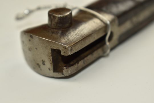 Belgian 1889 pattern sword bayonet stamped 23574 to cross guard, with 54.5cm fullered blade and scabbard stamped 32209. PLEASE NOTE ALL BLADED ITEMS ARE SUBJECT TO OVER 18 CHECK ON COLLECTION OR DELIVERY