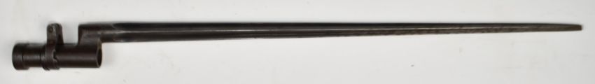 German WW1 acquired Russian socket bayonet stamped 158116 below socket, with 41cm cruciform blade and German scabbard. PLEASE NOTE ALL BLADED ITEMS ARE SUBJECT TO OVER 18 CHECK ON COLLECTION OR DELIVERY