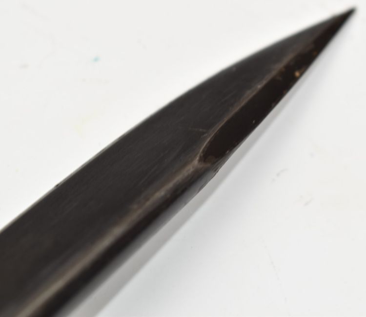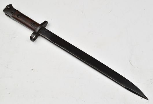 Indian made MkIII bayonet with square pommel, stamped NWR 44 to ricasso, with 31cm unfullered blade, scabbard and frog. PLEASE NOTE ALL BLADED ITEMS ARE SUBJECT TO OVER 18 CHECK ON COLLECTION OR DELIVERY