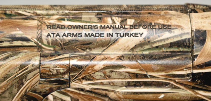 ATA 12 bore over and under ejector shotgun with all over Realtree Max-5 camouflage decoration, chequered semi-pistol grip and forend, single trigger, vented top rib and 30 inch multi-choke barrels, overall length 121cm, length of pull 37cm, serial number 17-52670. PLEASE NOTE THAT A VALID RELEVANT FIREARMS/SHOTGUN CERTIFICATE IS REQUIRED TO HANDLE/PURCHASE THIS ITEM.