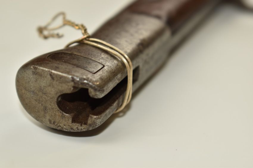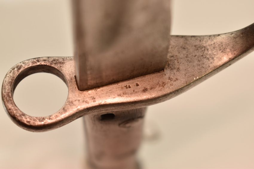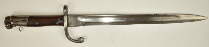 Brazilian 1908 pattern bayonet for Mauser, with wooden grips and 30cm fullered blade with scabbard. PLEASE NOTE ALL BLADED ITEMS ARE SUBJECT TO OVER 18 CHECK ON COLLECTION OR DELIVERY