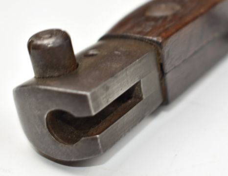 British No5 jungle carbine knife bayonet with wooden grips, 20cm fullered blade, scabbard and frog. PLEASE NOTE ALL BLADED ITEMS ARE SUBJECT TO OVER 18 CHECK ON COLLECTION OR DELIVERY