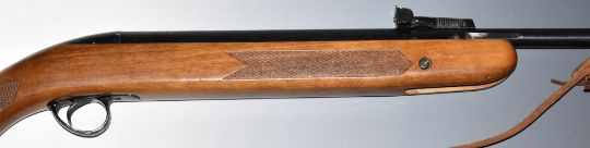 BSA Mercury .22 air rifle with chequered semi-pistol grip, raised cheek piece, leather sling and adjustable sights, serial number ZH04163.