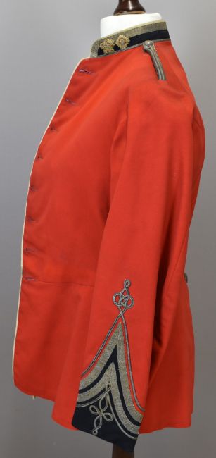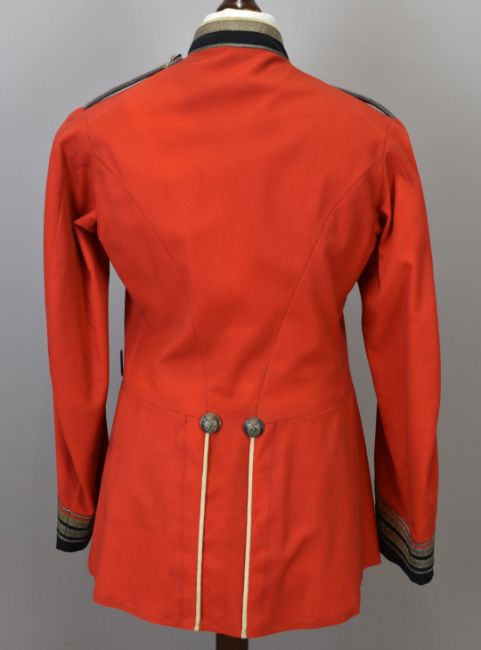 British Army officer's Royal South Gloucestershire Militia scarlet tunic with Lieutenant Colonel rank insignia to collar, black facings and silver lace, the buttons depicting a strung bugle under crown, c1880Consigned by the Soldiers of Gloucestershire Museum Trust