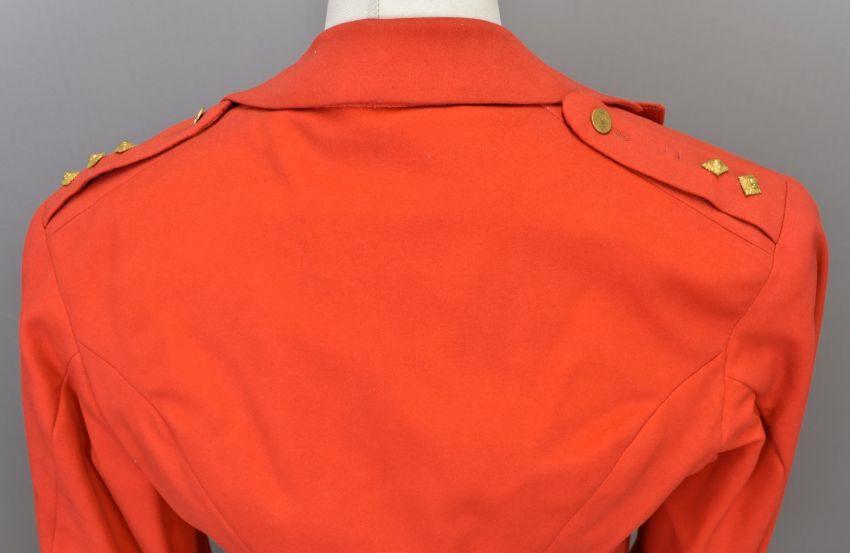 British Army Gloucestershire Regiment officer's scarlet mess jacket with white lapels, rank insignia to shoulder straps and associated buttons, with waistcoat and overalls, c1900-1925Consigned by the Soldiers of Gloucestershire Museum Trust