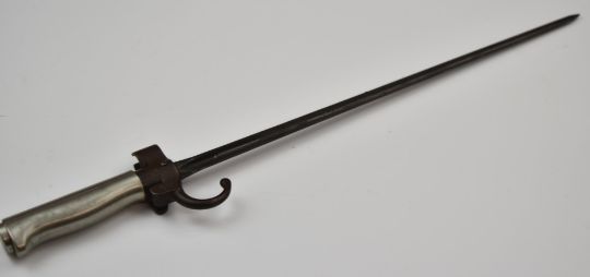 French 1886 pattern Lebel bayonet with 40cm cruciform blade, scabbard and frog. PLEASE NOTE ALL BLADED ITEMS ARE SUBJECT TO OVER 18 CHECK ON COLLECTION OR DELIVERY