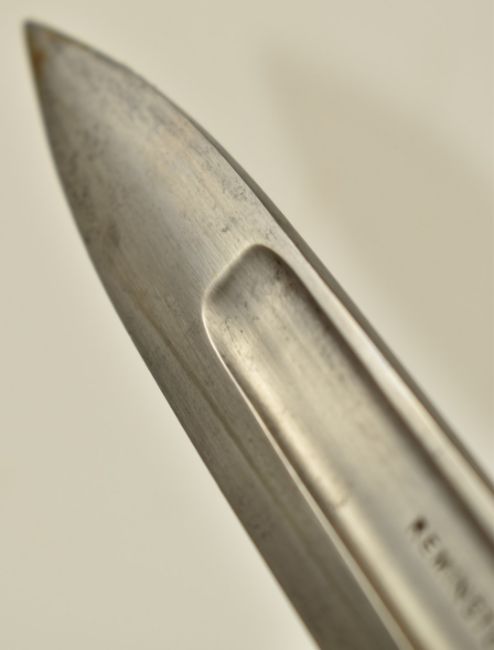 American 1899 pattern knife bayonet for the Remington Rolling Block rifle, the shortened 21cm fullered blade marked Remington Arms Co Ilion NY, with scabbard and belt loop. PLEASE NOTE ALL BLADED ITEMS ARE SUBJECT TO OVER 18 CHECK ON COLLECTION OR DELIVERY