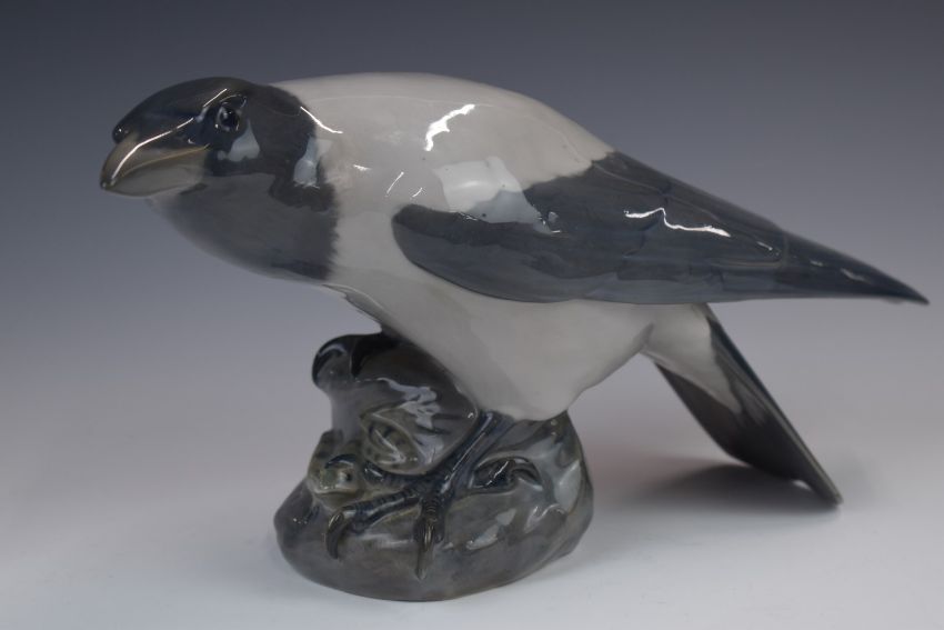 Royal Copenhagen crow with frog in his claws c1923 or earlier, model no 365, height 18 x length 35cm