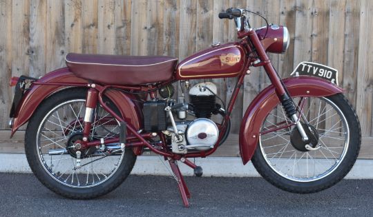 1955 Sun Challenger 200cc two stroke motorcycle, non transferable registration number TTV 910, with V5c listing date of first registration as 1985 and tax class as bicycle, recently restored but with some finishing jobs to do, engine has been run since restoration. With history folder including original 1955 buff logbook, various tax discs and 1973 MOT10%+VAT buyer's premium on this lot
