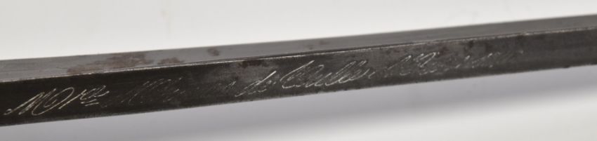 French 1874 patten Gras bayonet with wooden grips, downswept quillon and dated 1876 to 52cm T form blade, together with metal scabbard with matching serial number. PLEASE NOTE ALL BLADED ITEMS ARE SUBJECT TO OVER 18 CHECK ON COLLECTION OR DELIVERY
