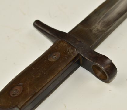 Italian 1870 pattern Vetterli bayonet stamped Torino to ricasso, with 23.5cm fullered blade and scabbard. PLEASE NOTE ALL BLADED ITEMS ARE SUBJECT TO OVER 18 CHECK ON COLLECTION OR DELIVERY