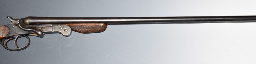 Belgian .410 side by side folding poacher's shotgun with chequered grip and forend, carved decoration to the wrist, engraved rib, double trigger and 28 inch barrels, overall length 110.5cm, length of pull 36.5cm, serial number 08K895. PLEASE NOTE THAT A VALID RELEVANT FIREARMS/SHOTGUN CERTIFICATE IS REQUIRED TO HANDLE/PURCHASE THIS ITEM.