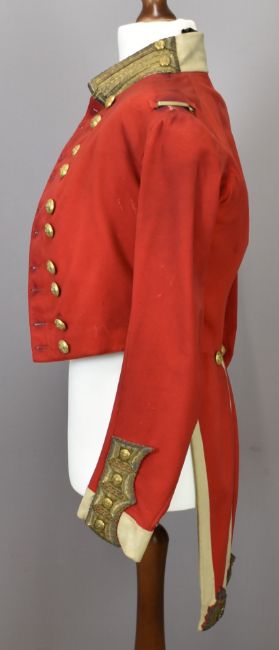 British Army 28th Regiment of Foot (Gloucestershire Regiment) officer's scarlet coatee with gilt regimental buttons and regimental ornaments to the white kersey turnbacksConsigned by the Soldiers of Gloucestershire Museum Trust