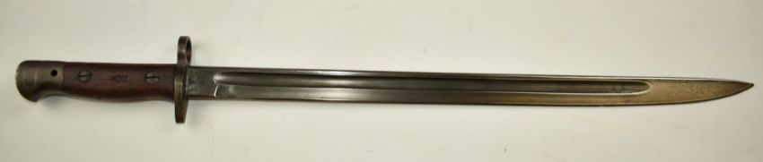 Australian 1907 pattern bayonet with good stamps, 43cm fullered blade, scabbard and frog. PLEASE NOTE ALL BLADED ITEMS ARE SUBJECT TO OVER 18 CHECK ON COLLECTION OR DELIVERY