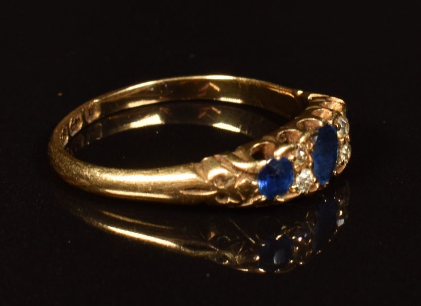 An 18ct gold ring set with sapphires and diamonds, Birmingham 1896, 3.2g