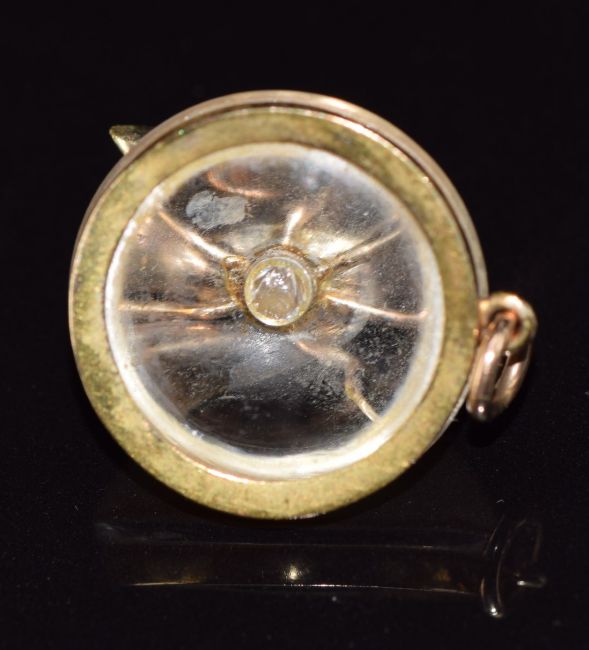 Victorian Essex crystal pendant mounted with a gold insect set with rose cut diamonds, emerald and rubies, 9.7g, 2cm