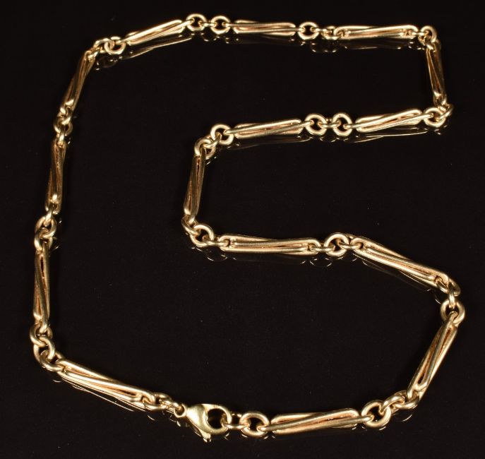 A 9ct gold necklace made up of made up of elongated and oval links, length 53cm, 39.9g