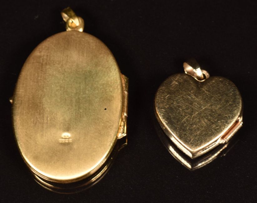 Two 9ct gold lockets, one in the form of a heart, length of longest 4cm, weight of both 6.9g