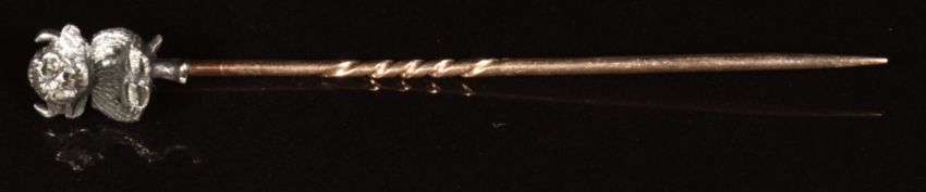 Victorian silver stick pin in the form of the devil set with rose cut diamond eyes