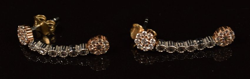 A 14k gold bi-coloured necklace set with cubic zirconia with matching earrings, 9.8g