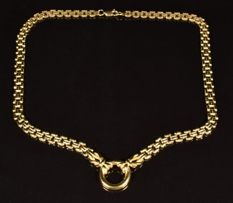 A 9ct gold necklace made up of rectangular links, length 39.5cm, 19.6g