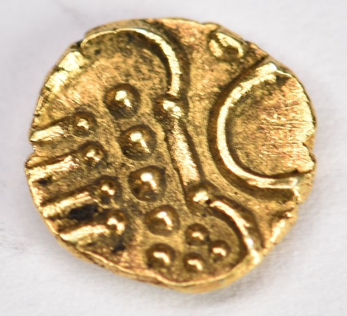 Celtic gold stater coin, unidentified, 7mm diameter, 0.4g