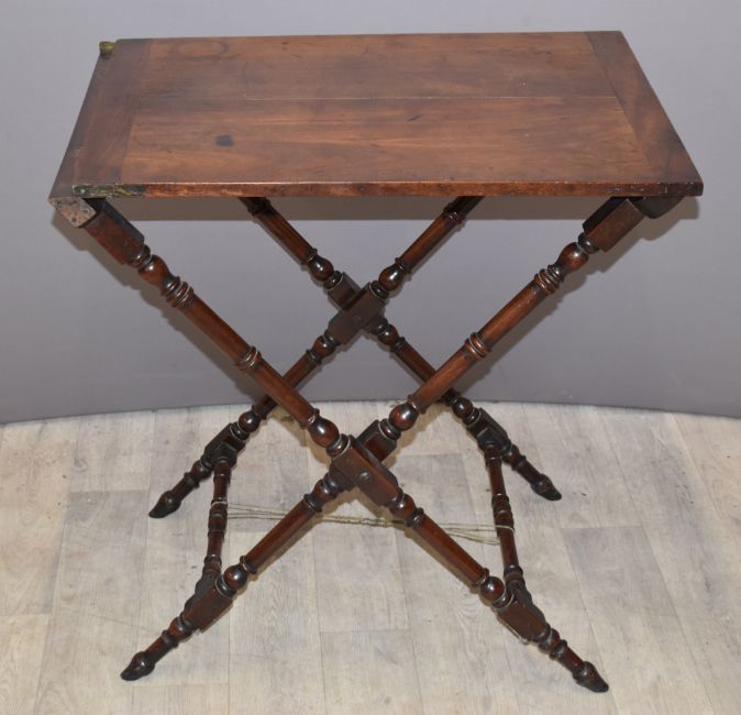 19thC mahogany folding campaign table, W69 x D52 x H74cm