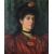 Early 20thC oil on canvas portrait of a lady in flowing red dress, 59 x 49cm, in ornate gilt Art Nouveau style frame