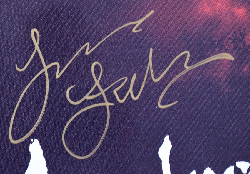 Autographed Apocalypse Now film or movie poster, signed by Francis Ford, Coppola, Martin Sheen, Harrison Ford, Robert Duvall, Lawrence Fishburne, Dennis Hopper, Ferderick Forrest and Marlon Brando, 99 x 69cm, together with certificate giving details of where the signatures were obtained