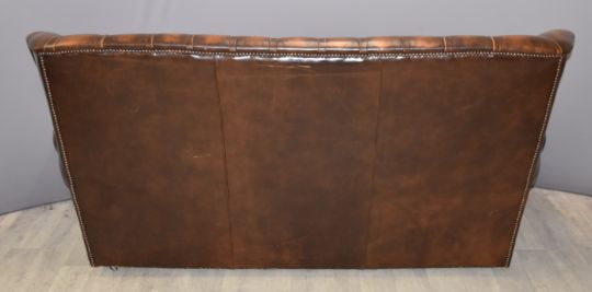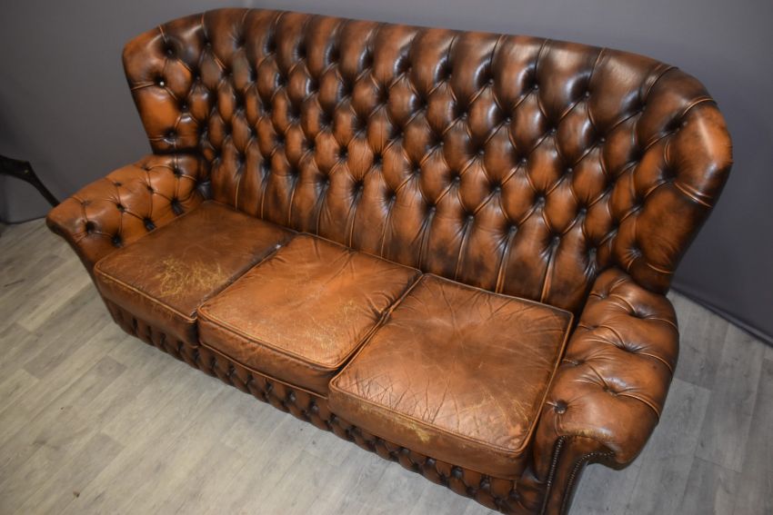 Chesterfield brown leather wing back three seat sofa
