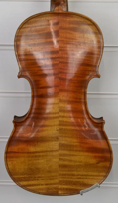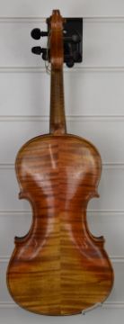 A 19th/20thC two piece back violin overall length 59.3cm, body 35.4cm, lower bout 21.1cm, upper bout 16.7cm