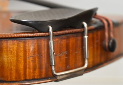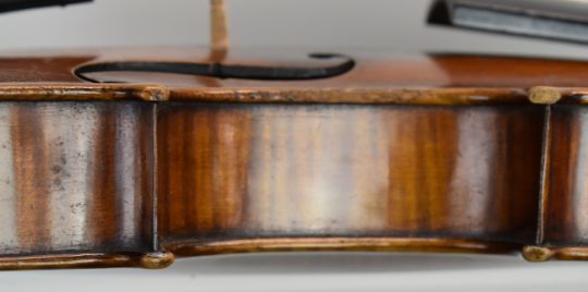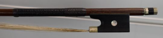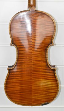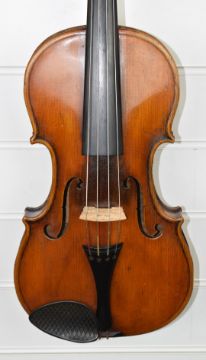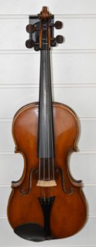 Carlos Fissorie viola with two bows, c1880s, labelled 'Anno 188*', overall length 66cm, body 39.3cm, lower bout 23cm, upper bout 18.8cm, bow 1 length 64cm, weight 60g, bow 2 length 74cm, weight 70g, with case