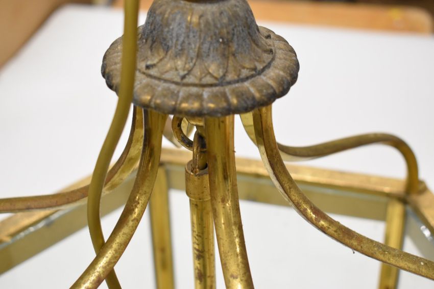 Heavy brass octagonal glazed electric light, diameter 45 x height 70cm
