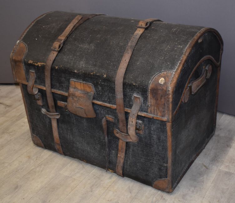 Leather bound dome top travelling trunk or chest, L78 x D54 x H62cm