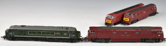 Eight 00 gauge model railway diesel and electric locomotives including two Western diesel hydraulics, further diesel hydraulic, Deltic, class 90 and class 20 by Hornby, Lima and Mainline