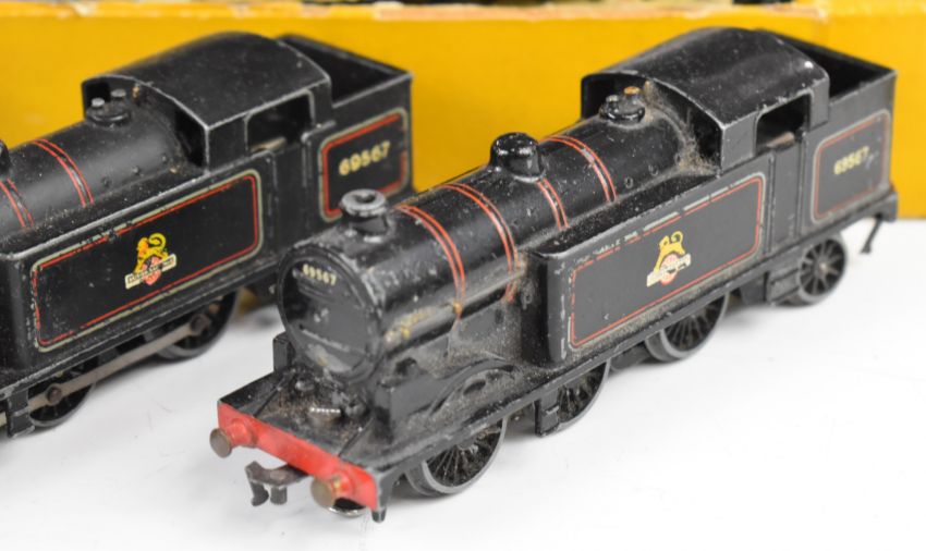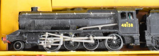 Hornby Dublo 00 gauge 3-rail model railway train set with 4-8-0 48158 locomotive, in original box together with three further Hornby Dublo 00 gauge 3-rail locomotives, two 69567 tank locomotives and Mallard 60022.