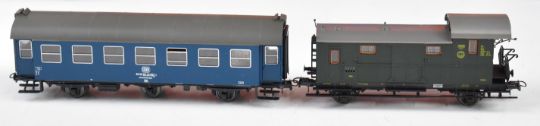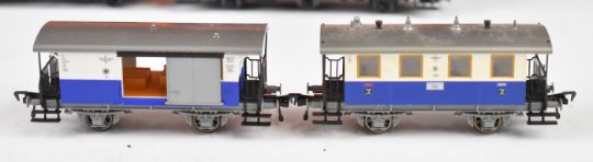 Twenty four Roco, Jouef and similar 00 gauge model railway continental goods wagons and coaches, some in original boxes.