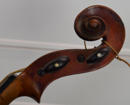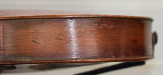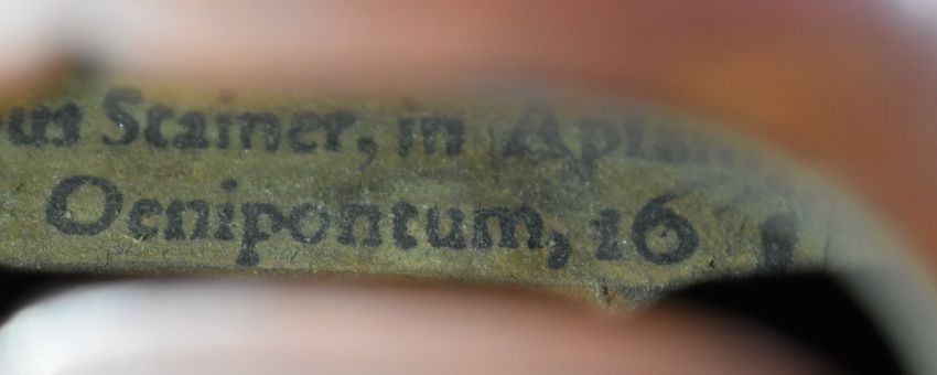 German two piece back violin labelled 'Jacobus Stainer, in Absam, Prope Oenipontum 16**',  overall length 59.6cm, body 35.5cm, lower bout 20.6cm, upper bout 10.4cm