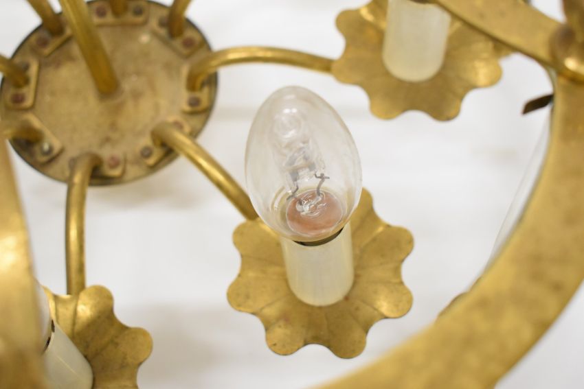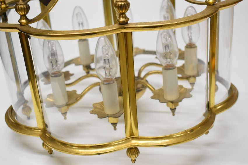 Brass electrolier with convex glass panels, diameter 45 x height 60cm