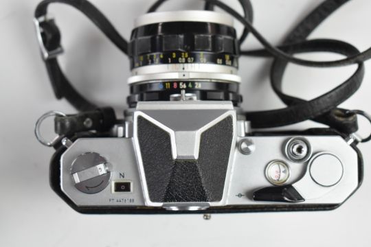 Two Nikon Nikkormat 35mm SLR cameras comprising FT with 35mm 1:2.8 lens and FT2 with 50mm 1:2, 200mm 1.4, 105mm 1:4 and 55mm 1:3.5 lenses