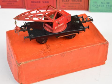 Twenty four Hornby 0 gauge model railway wagons, vans, coaches and trucks including Saxo Salt Wagon, Crane Truck, Milk Traffic Van, Gas Cylinder Wagon, Passenger Coach, Cattle Truck etc, all in original boxes.