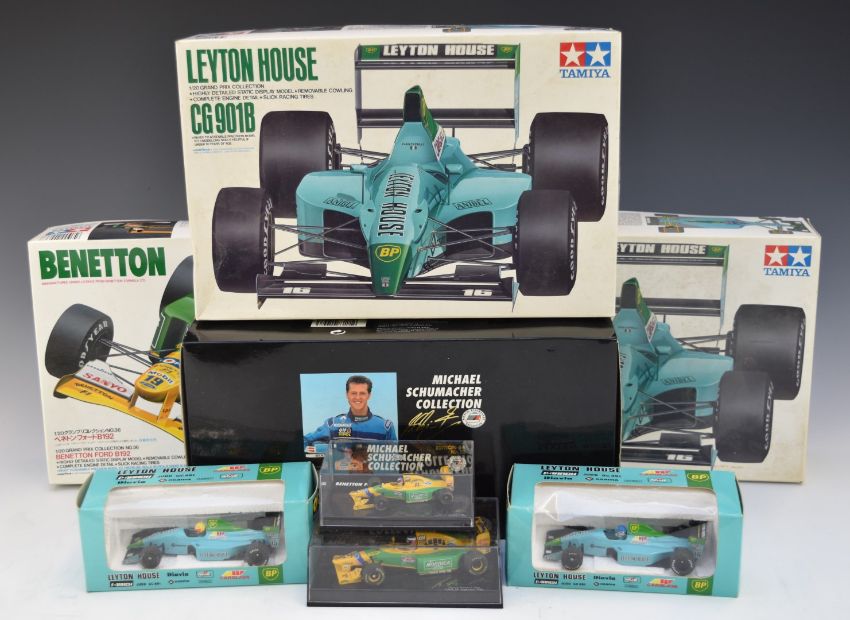 Eight Formula 1 model cars and car kits comprising two Tamiya Leyton House CG901B, Tamiya Benetton Ford B192, three Minichamps Michael Schumacher Collection including one Paul's Model Art and two Onyx, all in original boxes.