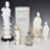 Chinese blanc de Chine figures, brush pot with Dog of Fo decoration and character marks and a funerary figure, tallest 33cm