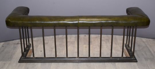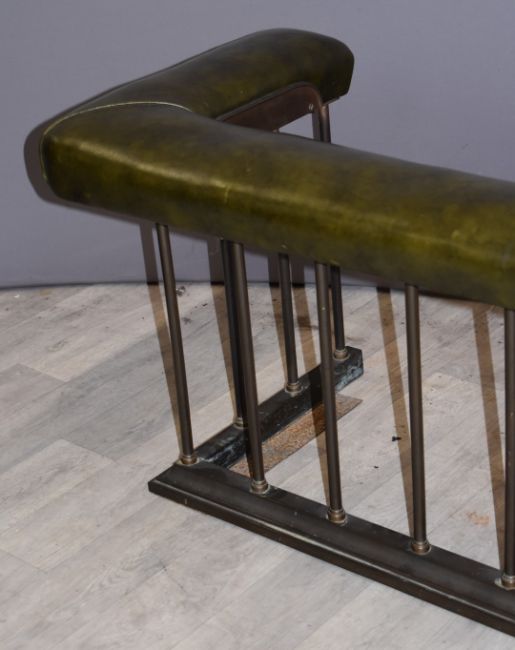 Green leather and brass/bronze club fender, L160 x D52 x H56cm