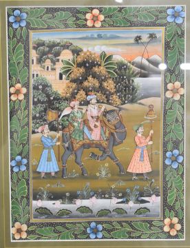 Two Indian watercolours, one of Maharajas riding a camel, 29 x 22cm, the other an elephant in ceremonial garb, 15 x 18cm
